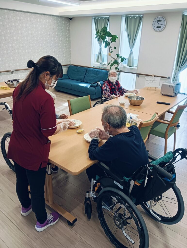 食欲の秋!ということで、利用者様とスタッフでスイートポテトを作りました!