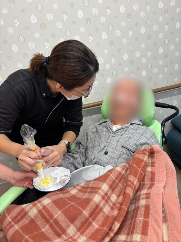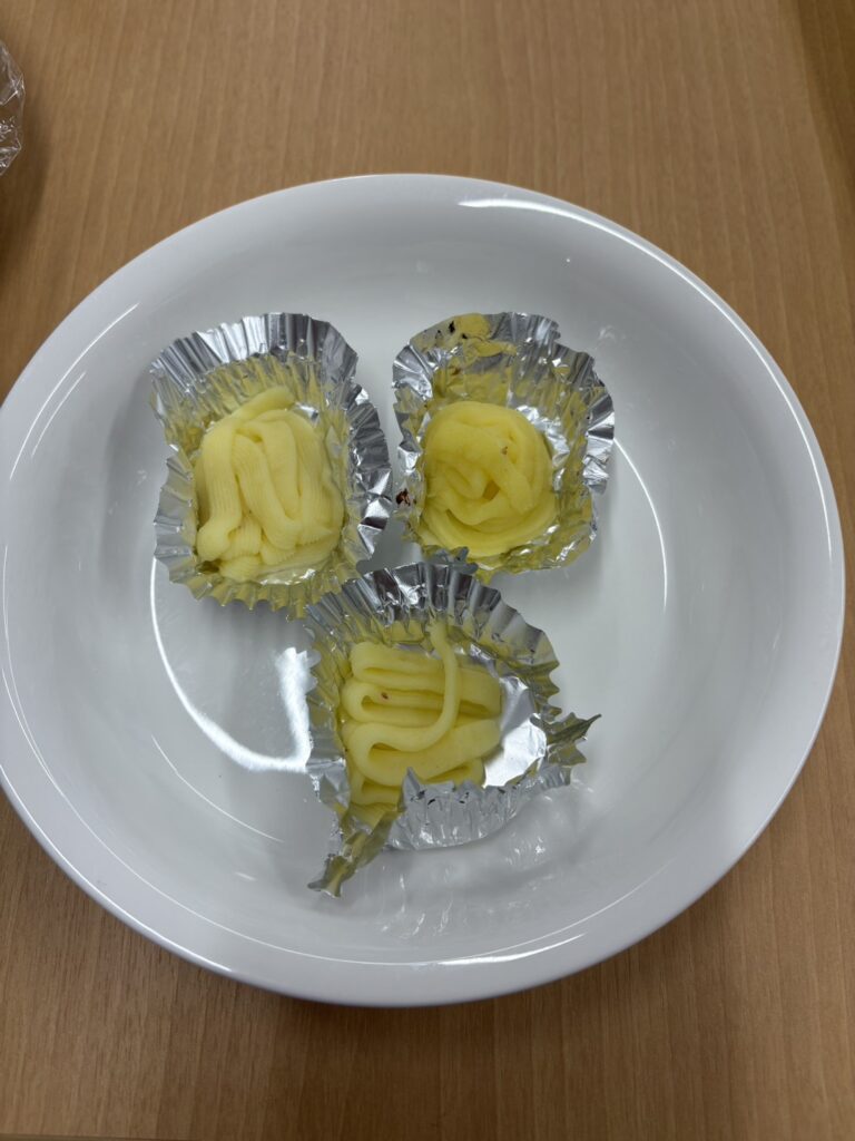 嚥下に不安のある利用者様には、ペースト状に伸ばしたさつまいもをクリームケーキにしてお召し上がりいただきました♡
